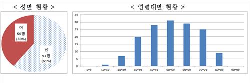 연령은 50대 31명(21%), 60대 29명(19%), 40대 28명(19%) 순이었다.