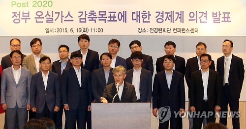 전경련 등 33개 경제단체와 발전·에너지업종 38개사는 이날 'Post 2020 온실가스 감축목표에 대한 경제계 의견 발표문'에서 "조만간 국제사회에 제시할 2030년 자발적 온실가스 감축기여(INDC)는 국민경제에 상당한 영향을 미치는 만큼 정부의 신중한 정책 결정이 그 어느 때보다 중요하다"며 이같이 주장했다.
