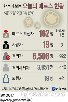 (서울=연합뉴스) 김길원 기자 = 국내 중동호흡기증후군(메르스) 환자의 치명률이 17일 기준으로 11.7%까지 높아졌다.