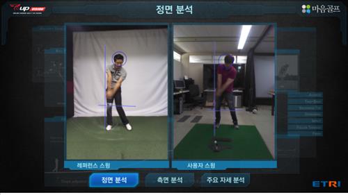 | △ 한국전자통신연구원과 마음골프가 동작인식 기술을 바탕으로 개발한 골프 교습 프로그램인 '스윙 와처'. |