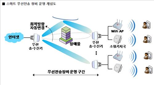 스마트 무선전송 장비는 기가 와이파이 기반으로 만들어져 최대 1.3Gbps의 속도를 내고, 설치가 간단해 유선망에 문제가 생긴 재난지역이나 비상상황 발생 지역 등 임시 전송 네트워크를 신속히 구축해야 하는 지역에도 활용할 수 있다.