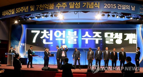 (세종=연합뉴스) 이재영 기자 = 올해는 우리나라 건설업체가 해외에 진출한 지 50년이 되는 해이자, 누적 수주액이 7천억 달러(약 775조원)를 넘어선 해다.