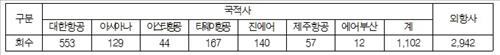 항공사별로는 외항사의 운항취소 횟수가 국적항공사의 약 3배에 달했다.