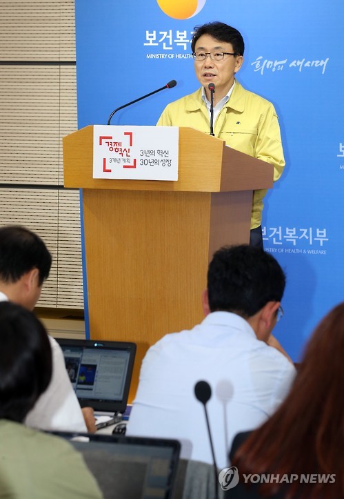 | △ 메르스 관련 질문에 답하는 권덕철 총괄반장 (세종=연합뉴스) 배재만 기자 = 권덕철 중앙메르스대책본부 총괄반장이 24일 오전 정부세종청사 보건복지부 공용브리핑룸에서 열린 정례브리핑에서 중동호흡기증후군(메르스) 환자 현황과 관련한 질문에 답하고 있다. 2015.6.24 scoop@yna.co.kr http://blog.yonhapnews.co.kr/f6464 |