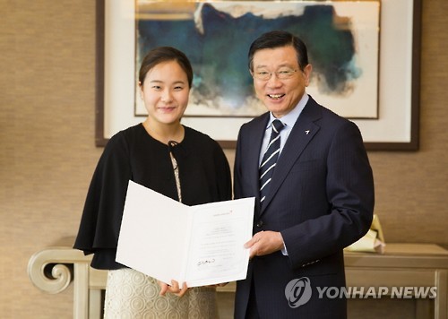 (서울=연합뉴스) 성혜미 기자 = 박삼구 금호아시아나그룹 회장이 바이올리니스트 임지영씨에게 1년 간 아시아나항공[020560] 비즈니스석 무제한 이용권을 30일 선물했다.
