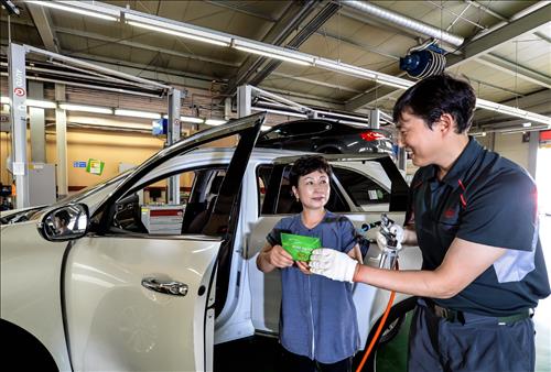 전국 800여 개에 달하는 정비 거점 오토큐를 방문하는 기아차 고객에게는 항균 티슈로 차량 내외부의 주요 부위를 닦아주는 항균 소독 서비스를 시행한다.