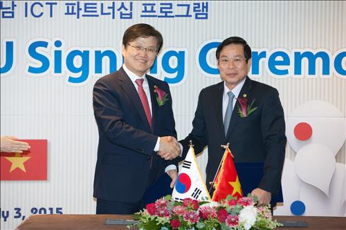 (서울=연합뉴스) 정성호 기자 = 미래창조과학부는 3일 서울 플라자호텔에서 베트남 정보통신부와 '정보통신기술(ICT) 협력 양해각서(MOU)'를 체결하고 양국 기업 간 비즈니스 미팅을 했다고 5일 밝혔다.