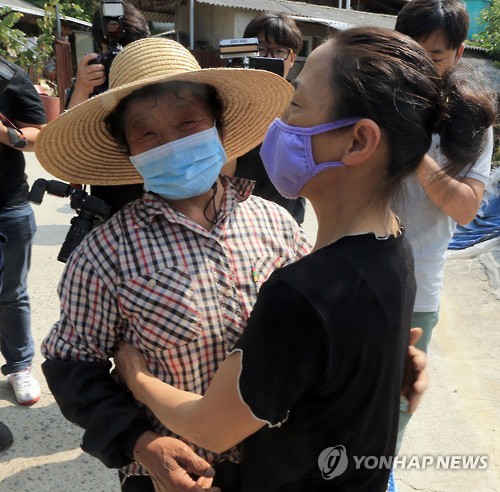 | △ 격리해제 주민들 "위아랫집인데 이게 얼마만이야" (순창=연합뉴스) 백도인 기자 = 중동호흡기증후군(메르스) 환자 발생으로 14일동안 마을이 통째로 격리됐다가 19일 풀려난 전북 순창군 장덕마을에서 주민 이성자(57)씨와 최복희(68)씨가 얼싸안으며 반가워하고 있다. 이들은 "서로 위아랫집에 살며 자매같이 지냈는데 14일동안 얼굴도 보지 못했다"며 "이제 살 것 같다"고 말했다. 2015.6.19 doin100@yna.co.kr |