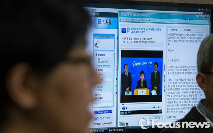 (서울=포커스뉴스) 8일 오전 서울 종로구 정부서울청사에서 정은경 질병관리본부장 직무대리가 메르스(중동호흡기증후군) 바이러스 유전체 변이가 관찰 되었다는 한 언론의 기사와 관련, 브리핑을 하고 있다.