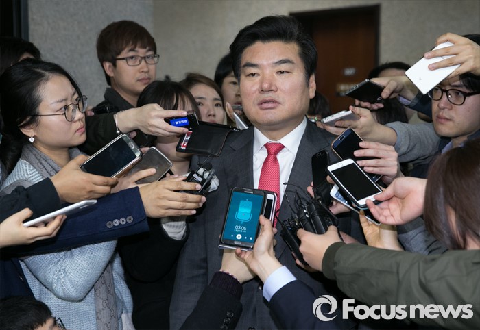 (서울=포커스뉴스) 원유철 새누리당 원내대표가 10일 오전 서울 여의도 국회에서 비공개 최고위원회의에 참석한 뒤 '김무성 욕설 녹취록'으로 논란을 일으킨 윤상현 의원과 관련 취재진 질문에 답하고 있다. 전날 김무성 대표와의 면담이 불발된 윤 의원은 이날 오전 김 대표의 자택을 방문해 사과했다고 전했다.