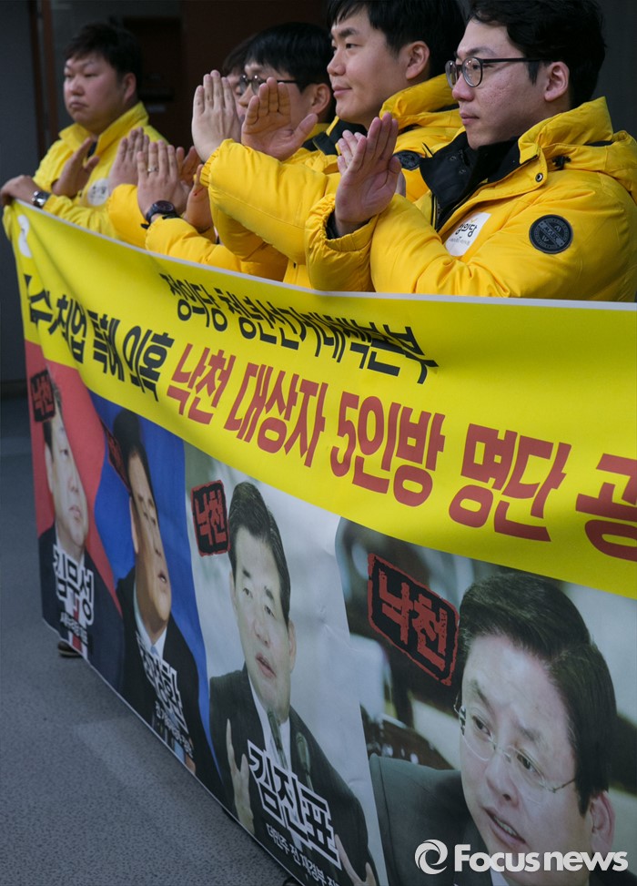 (서울=포커스뉴스) 11일 오전 서울 여의도 국회 정론관에서 정의당 청년선대본부가 금수저 취업 특혜 의혹 5인방 공천 낙마 촉구 기자회견을 하고 있다. 이날 명단에 발표된 5인방은 김무성 새누리당 대표, 최경환, 정우택, 정용기 의원, 김진표 전 더불어민주당 의원이다.