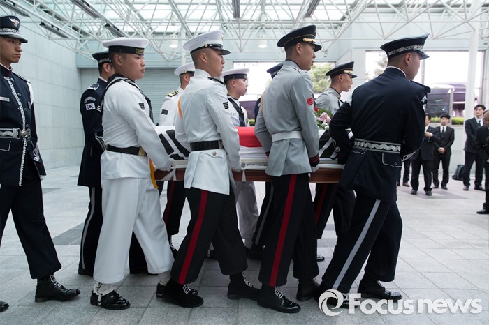 (서울=포커스뉴스) 14일 오전 서울 송파구 아산병원 장례식장에서 강영훈 전 국무총리의 발인식이 엄수되고 있다.