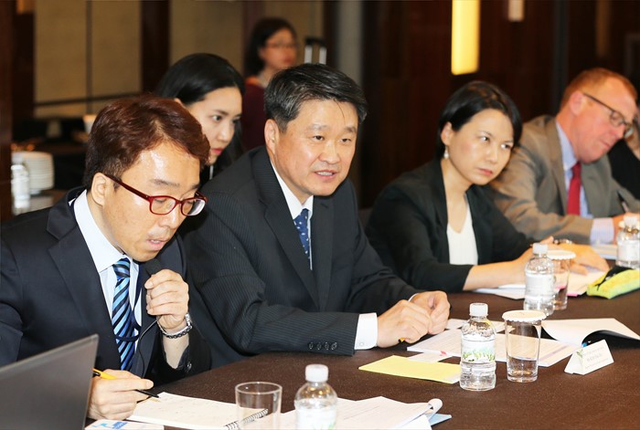 (서울=포커스뉴스) 김학도 산업통상자원부 통상교섭실장이 17일 오후 서울 웨스틴 조선호텔 로즈룸에서 한-EU FTA 발효 5주년 평가를 위해 방한중인 베른트 랑에(Bernd LANGE, 사회당 소속) 유럽의회 국제통상위 의장을 비롯한 8명의 국제통상위 위원의 예방을 받고, 한-EU FTA를 포함한 양측 통상정책과 한국의 향후 FTA 추진방향 등에 관해 의견을 교환하고 있다. <사진제공=산업통상자원부>