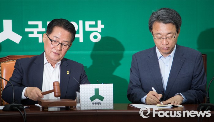 (서울=포커스뉴스) 박지원 국민의당 원내대표가 19일 오전 서울 여의도 국회에서 열린 국민의당 원내대책회의에서 의사봉을 두드리고 있다.